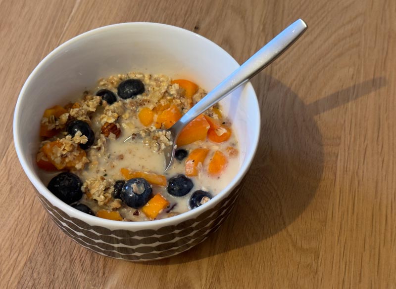 Am Morgen kombiniere ich meine Granola mit ungesüsster Hafermilch und frischen Früchten oder Beeren. Diese Kombination ist nicht nur köstlich, sondern liefert auch eine Fülle an Nährstoffen, die meinen Körper und Geist optimal auf den Tag vorbereiten.Warum ist dieses Frühstück so effektiv?
